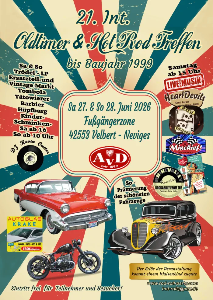 Das nächste Oldtimer & Hot-Rod Treffen findet 2026 in Velbert-Neviges statt.