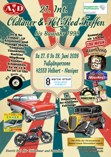 Das nächste Oldtimer & Hot-Rod Treffen findet 2026 in Velbert-Neviges statt.